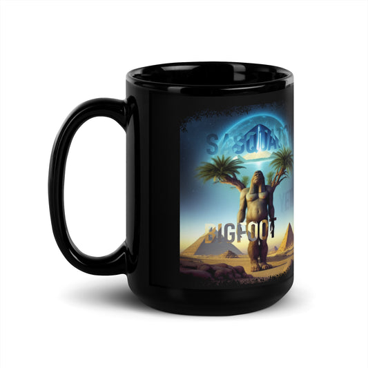 Sasquatch Yeti Bigfoot Pyramid Black Glossy Mug