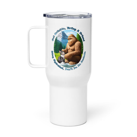 Pyramid Scheme Enthusiast Sasquatch Travel mug with a handle