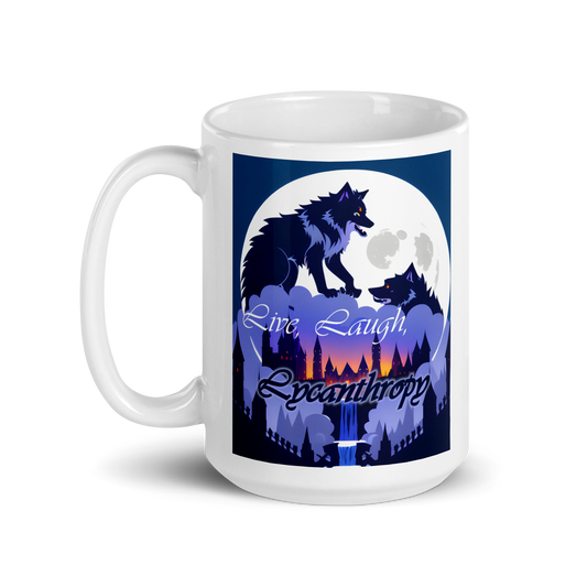 Live, Laugh, Lycanthropy Travel mug with a handle