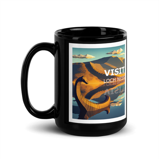 Loch Ness Monster Inkpunk Black Glossy Mug