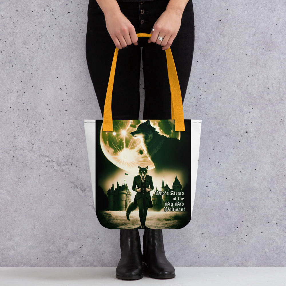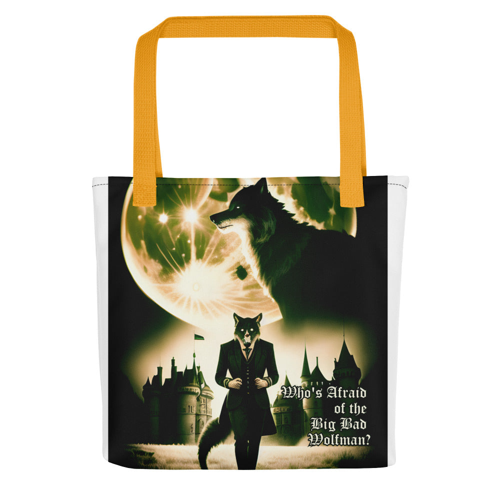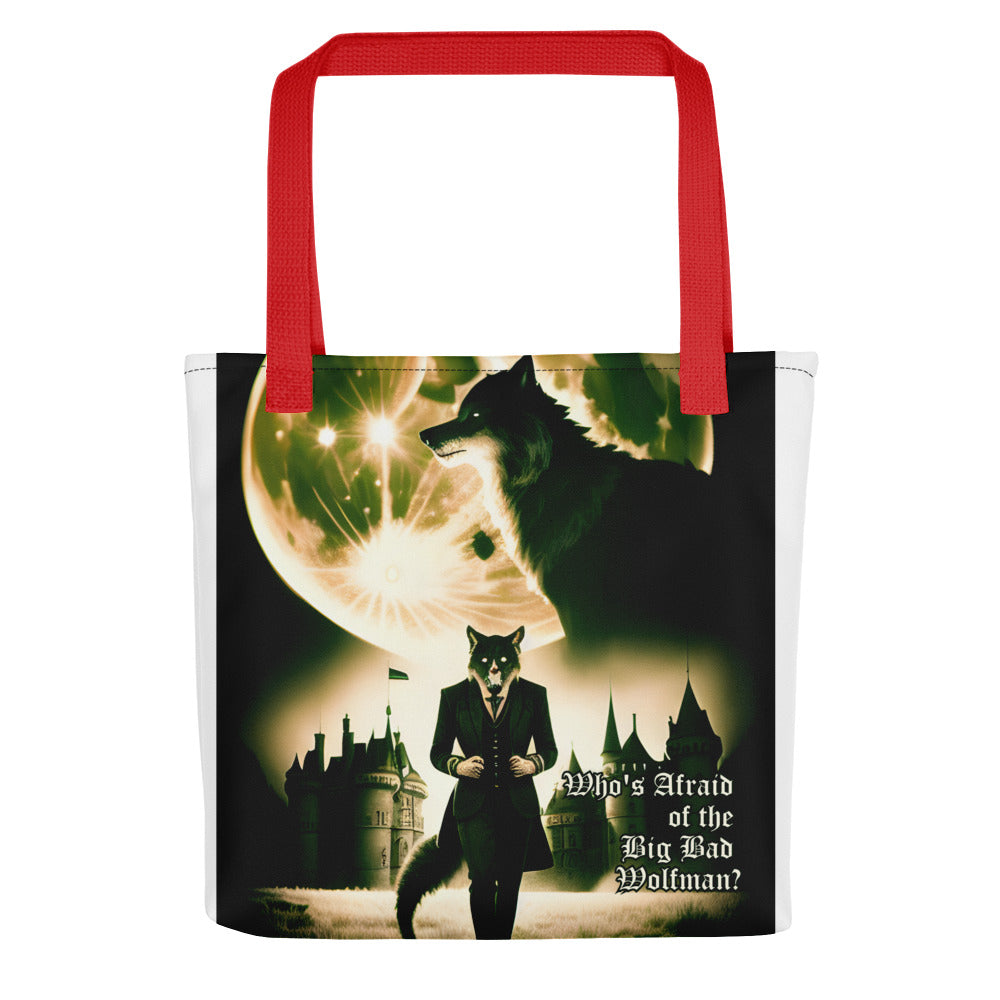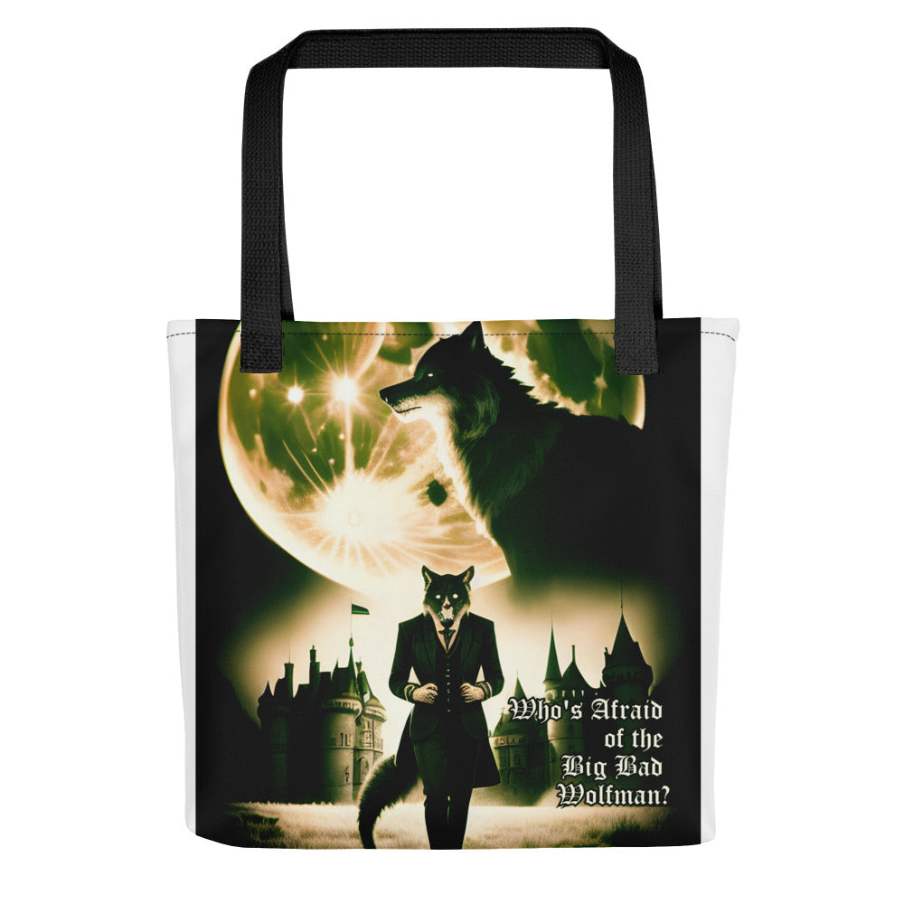 Are you afraid of the Big Bad Wolfman? Well you shouldn't be, he's inviting you inside for some tea. If you choose to stay out on the moors, you'll at least have a spacious and trendy tote bag to help you carry around everything that matters.