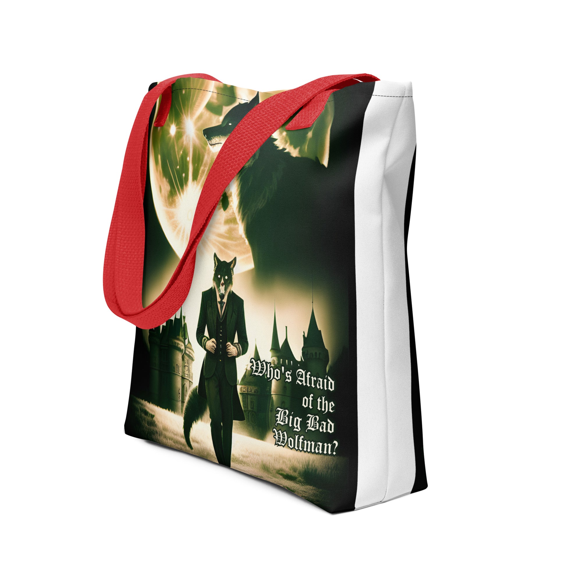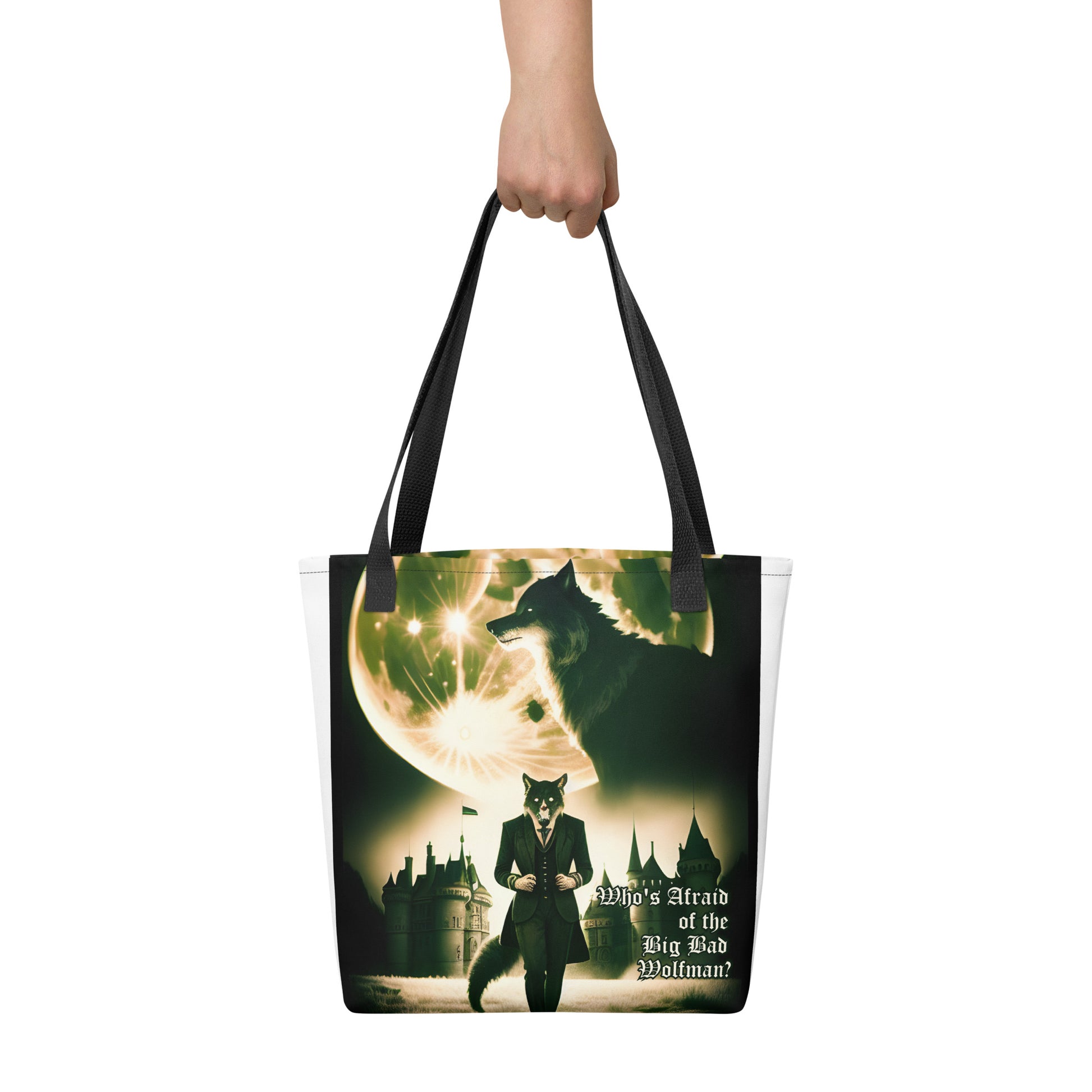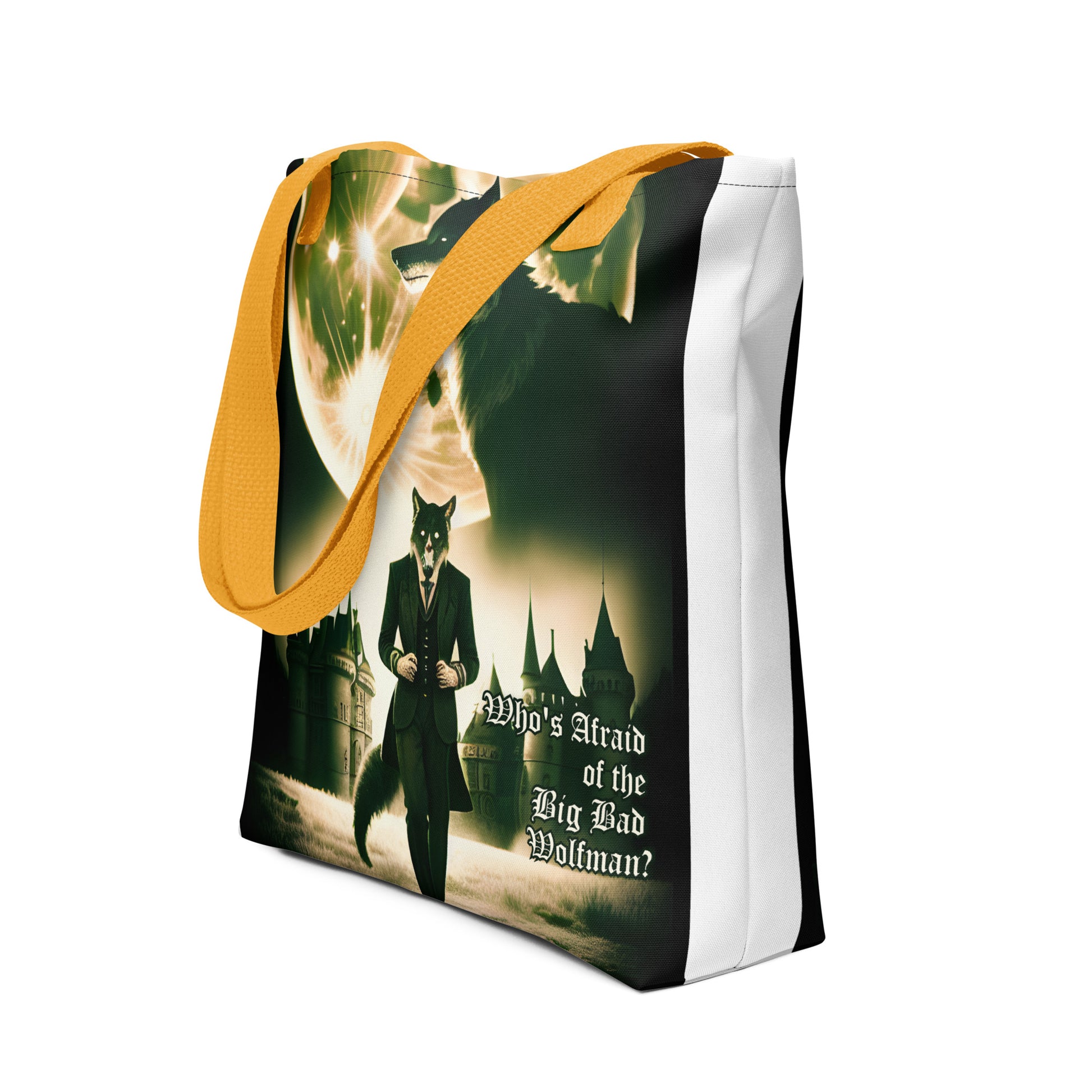 Are you afraid of the Big Bad Wolfman? Well you shouldn't be, he's inviting you inside for some tea. If you choose to stay out on the moors, you'll at least have a spacious and trendy tote bag to help you carry around everything that matters.