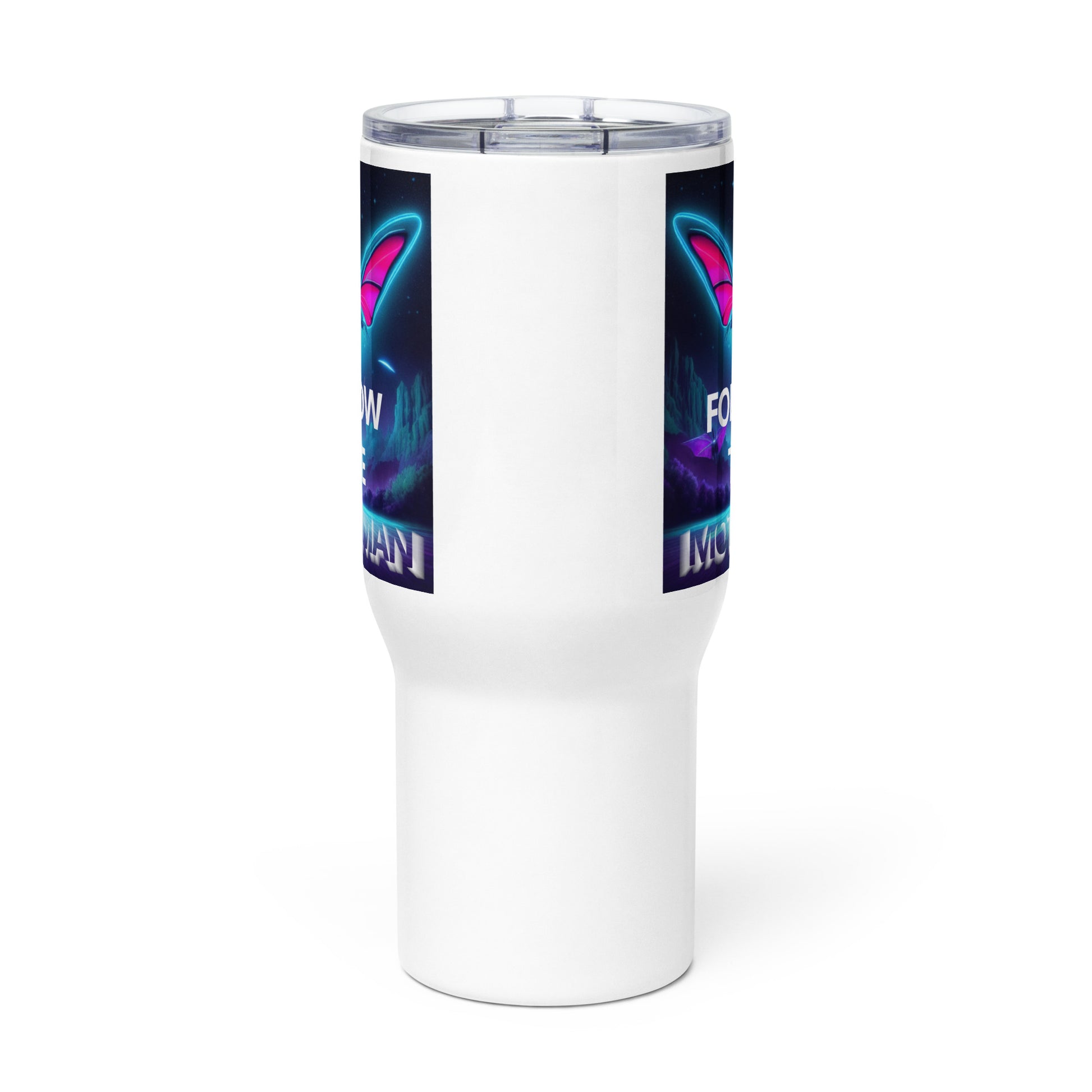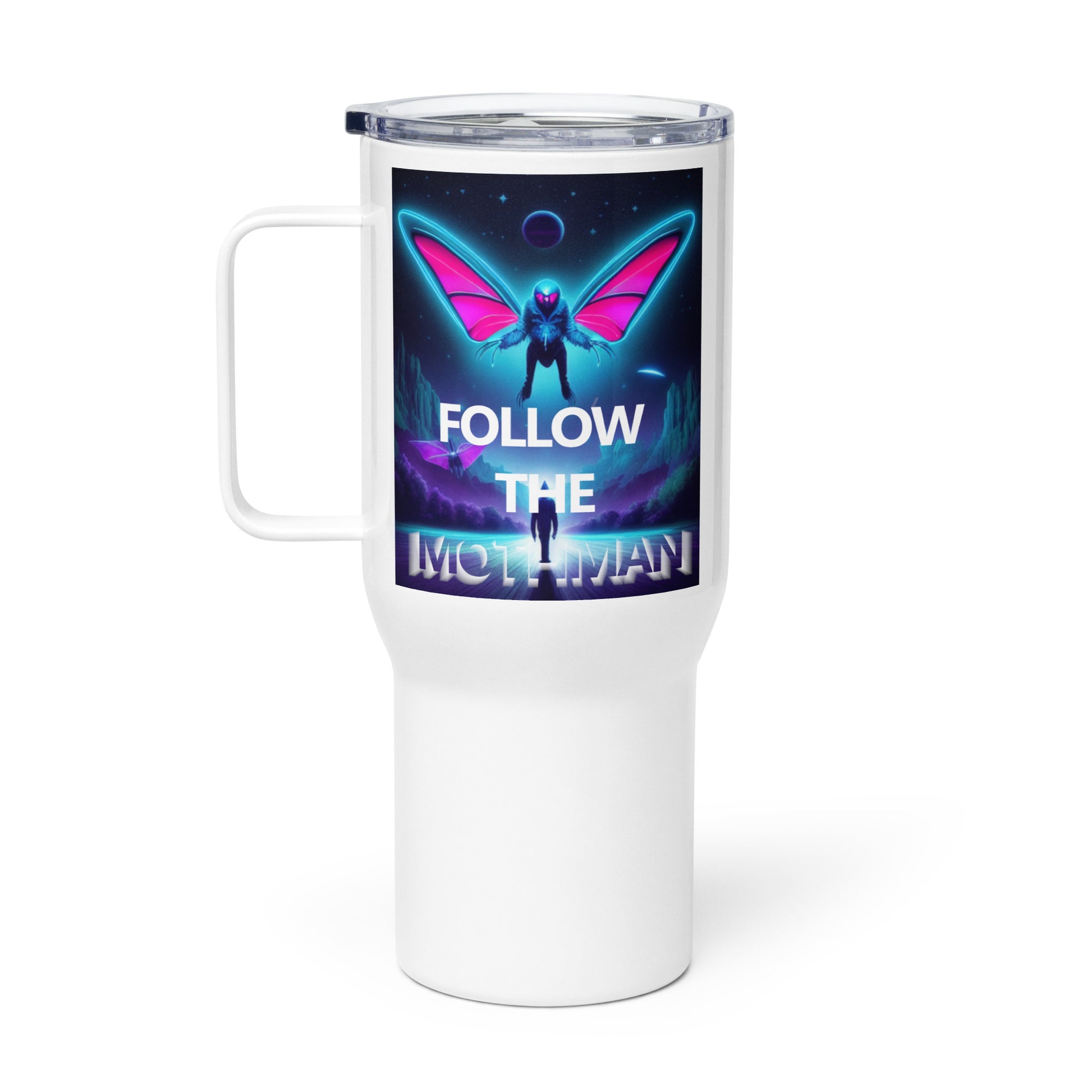 No longer will you spend foggy nights, cold and searching. Searching for the red-eyed creature who kept you from that disaster. Follow The Mothman...and head his warnings with this stylish Travel mug!