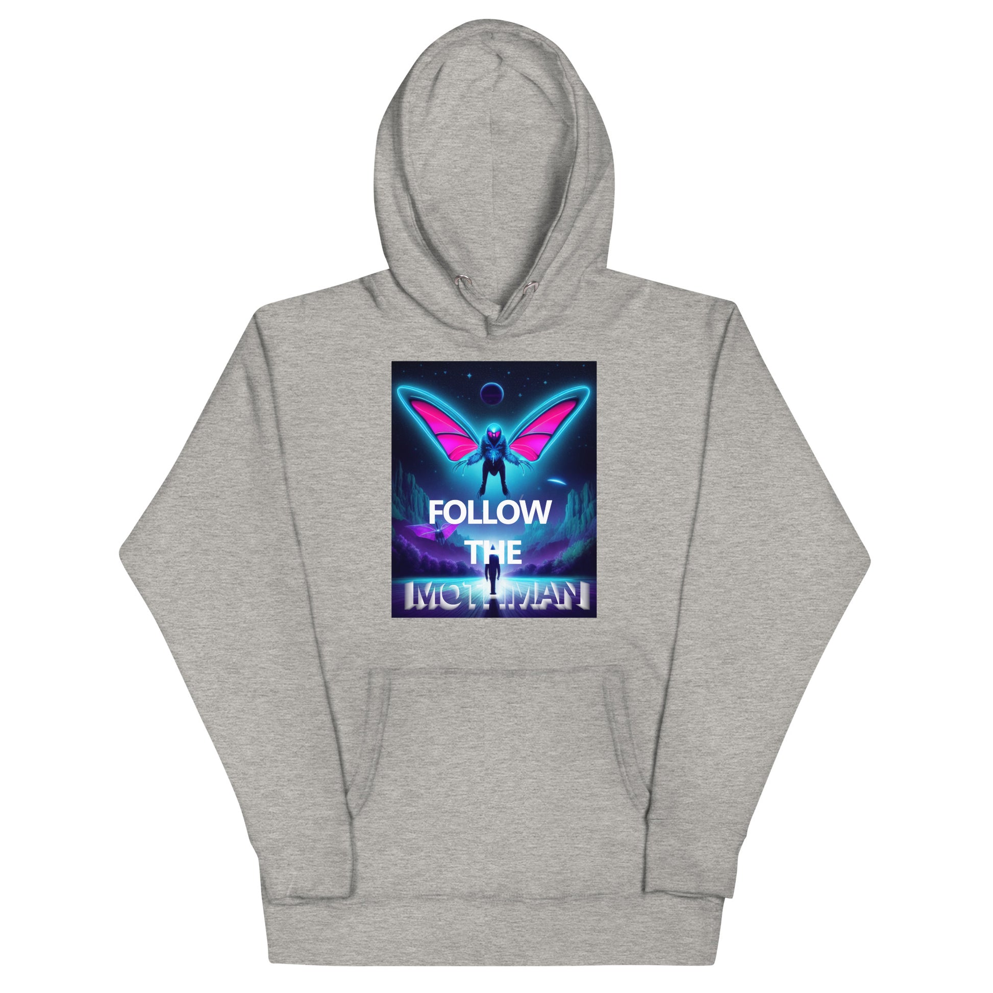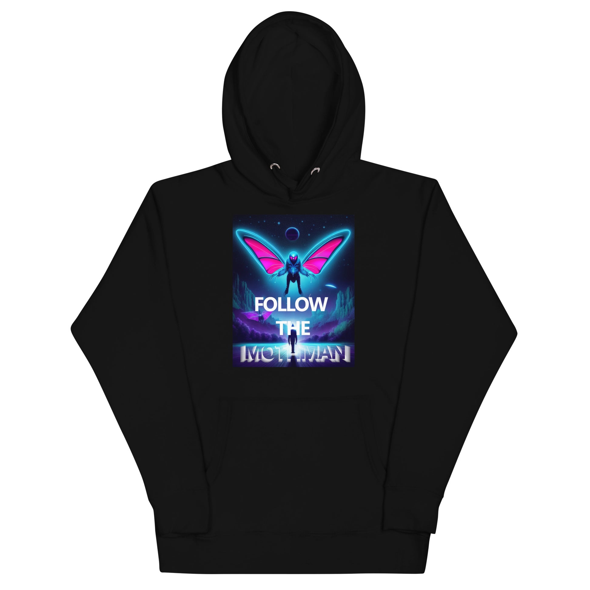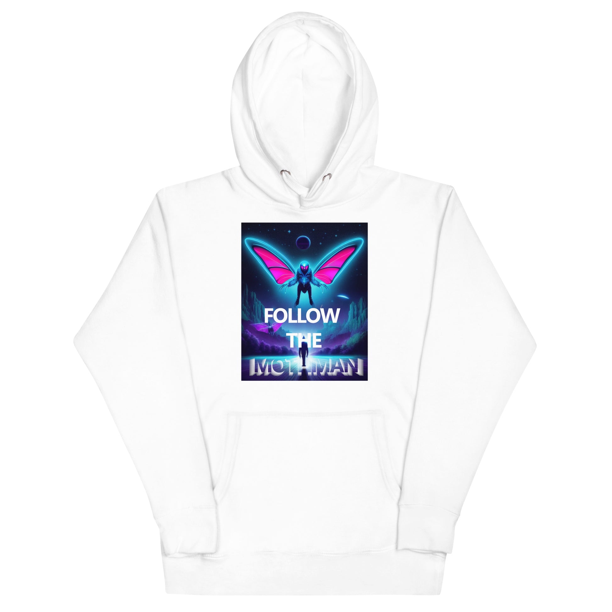 Follow The Mothman in the softest hoodie you'll ever own. You won't regret buying this classic streetwear piece of apparel with a convenient pouch pocket and warm hood for chilly evenings and cornfield wanderings.