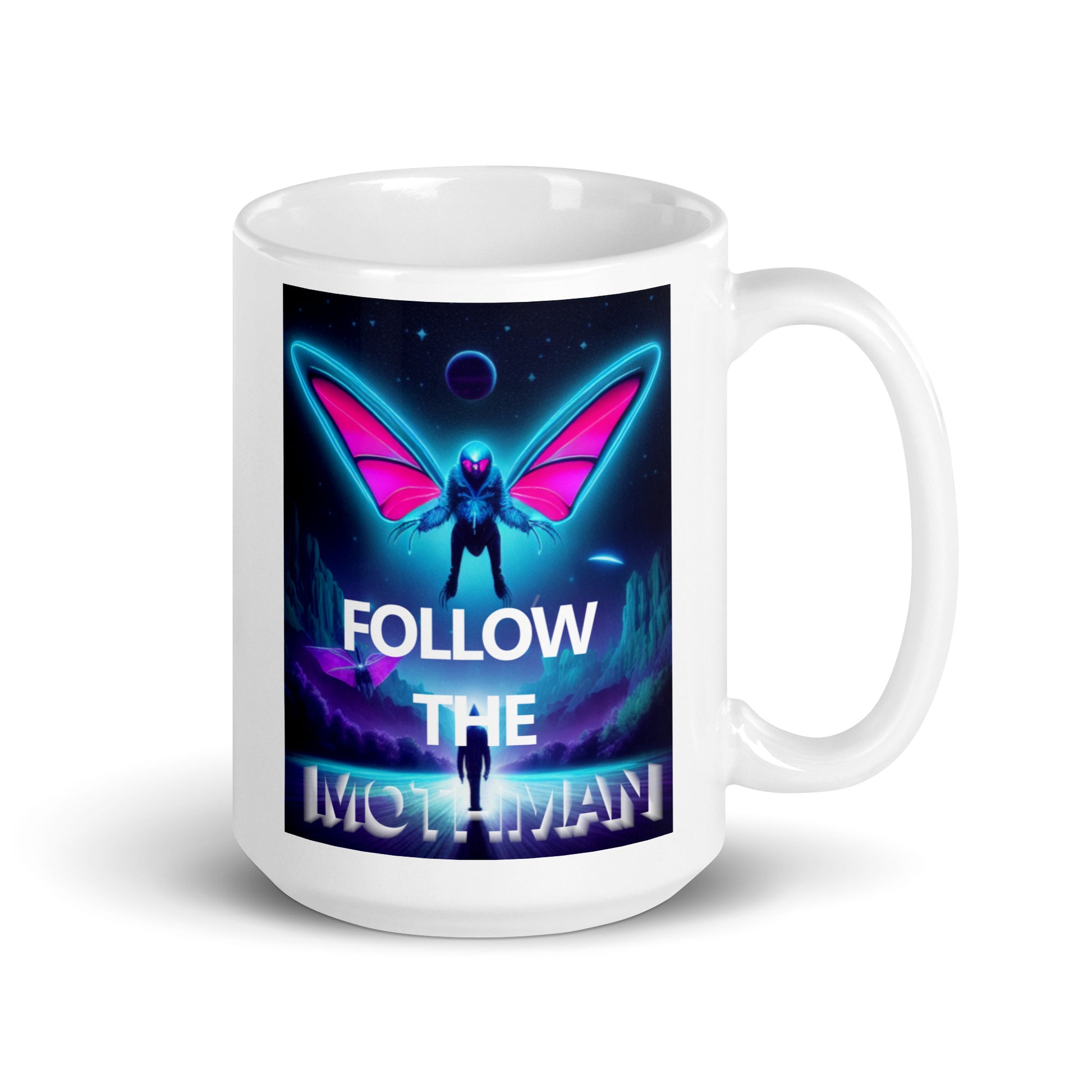 Follow The Mothman whether you're drinking your morning coffee, evening tea, or something to provide you a bit more courage—this mug's for you! It's sturdy and glossy with a vivid print that'll withstand the microwave and dishwasher.