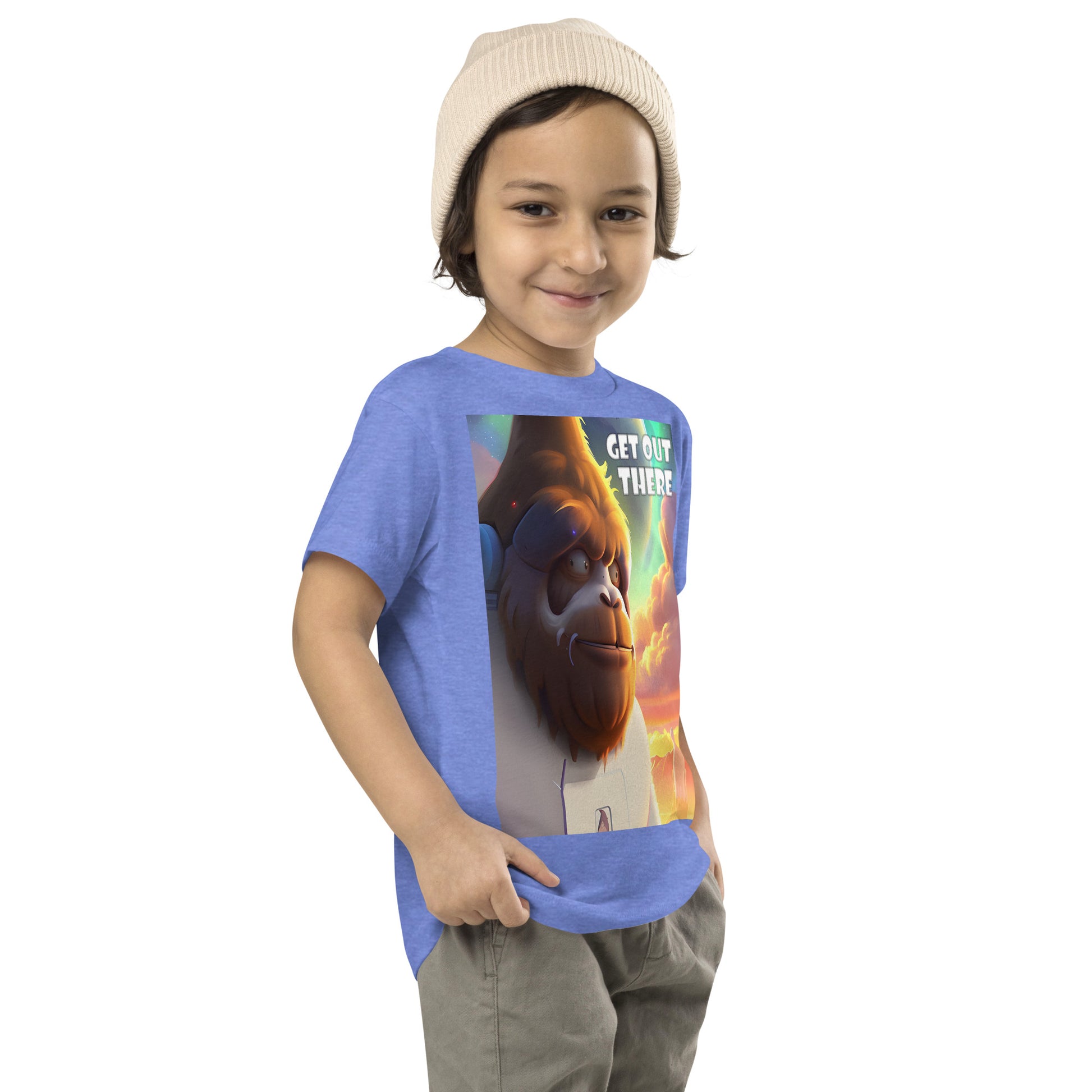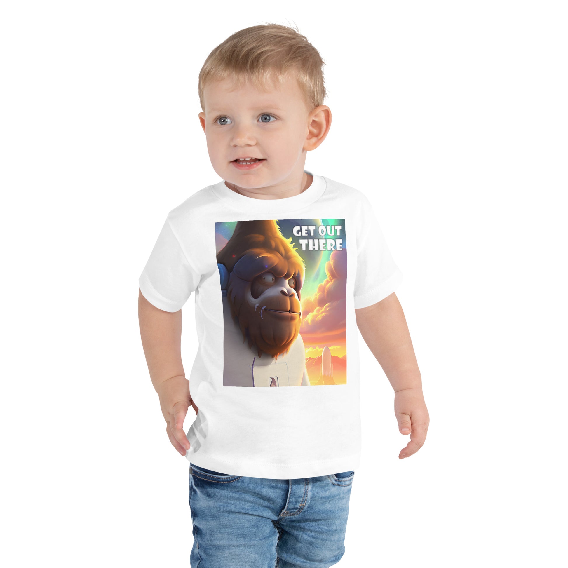 Let your toddler Get Out There and do their thing while feeling super comfy and looking extra stylish in this short-sleeve jersey t-shirt from 100% cotton with a unique print. The tee is soft, durable, and bound to become the staple of any toddler's wardrobe looking to travel the starts with an interplanetary Yeti.