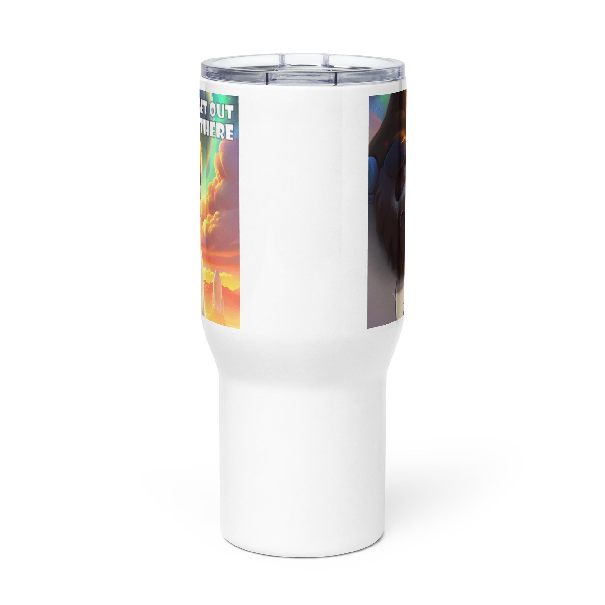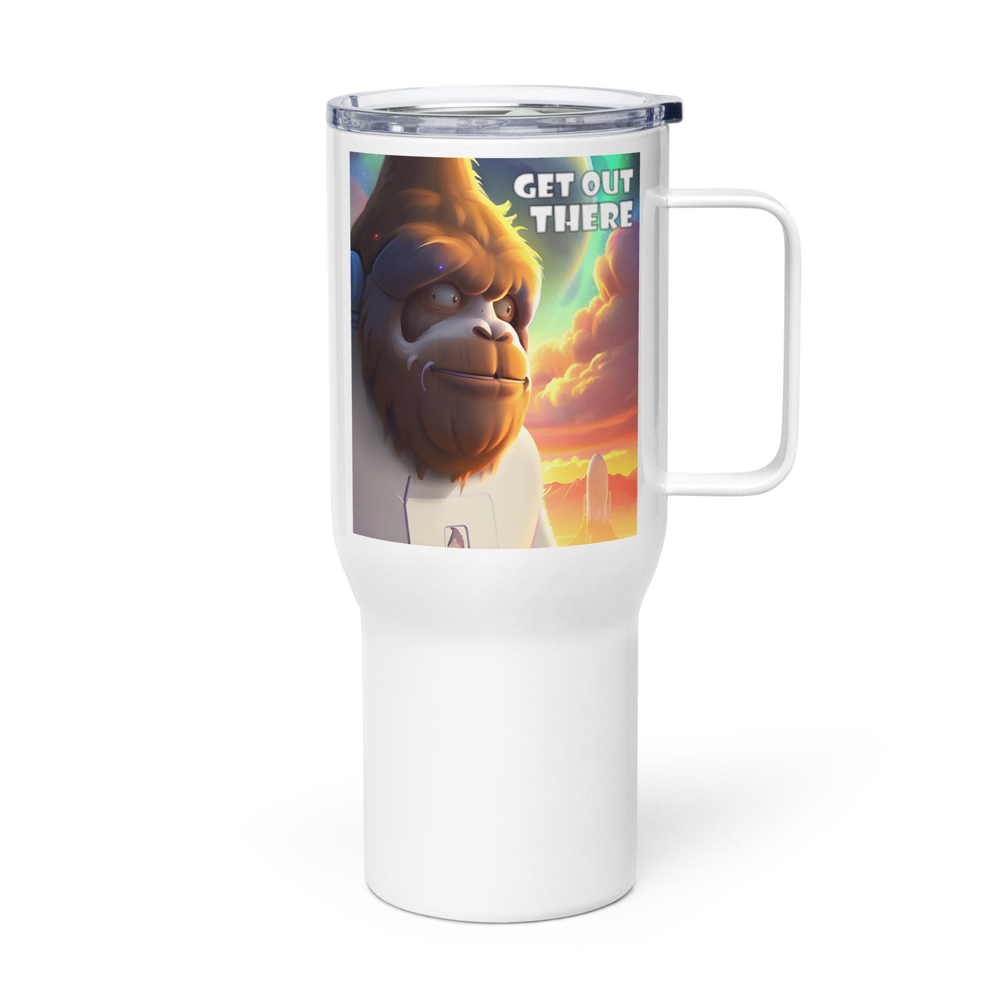 Get Out There, Sip in style and comfort with an elevated travel mug. With its sleek and durable design, you’ll love taking this mug wherever you go. It fits into most car cup holders and has a spill-proof plastic lid. Commute to work or leave the planet with an interstellar Sasquatch—this travel mug will keep your beverage safe and at just the right temperature.