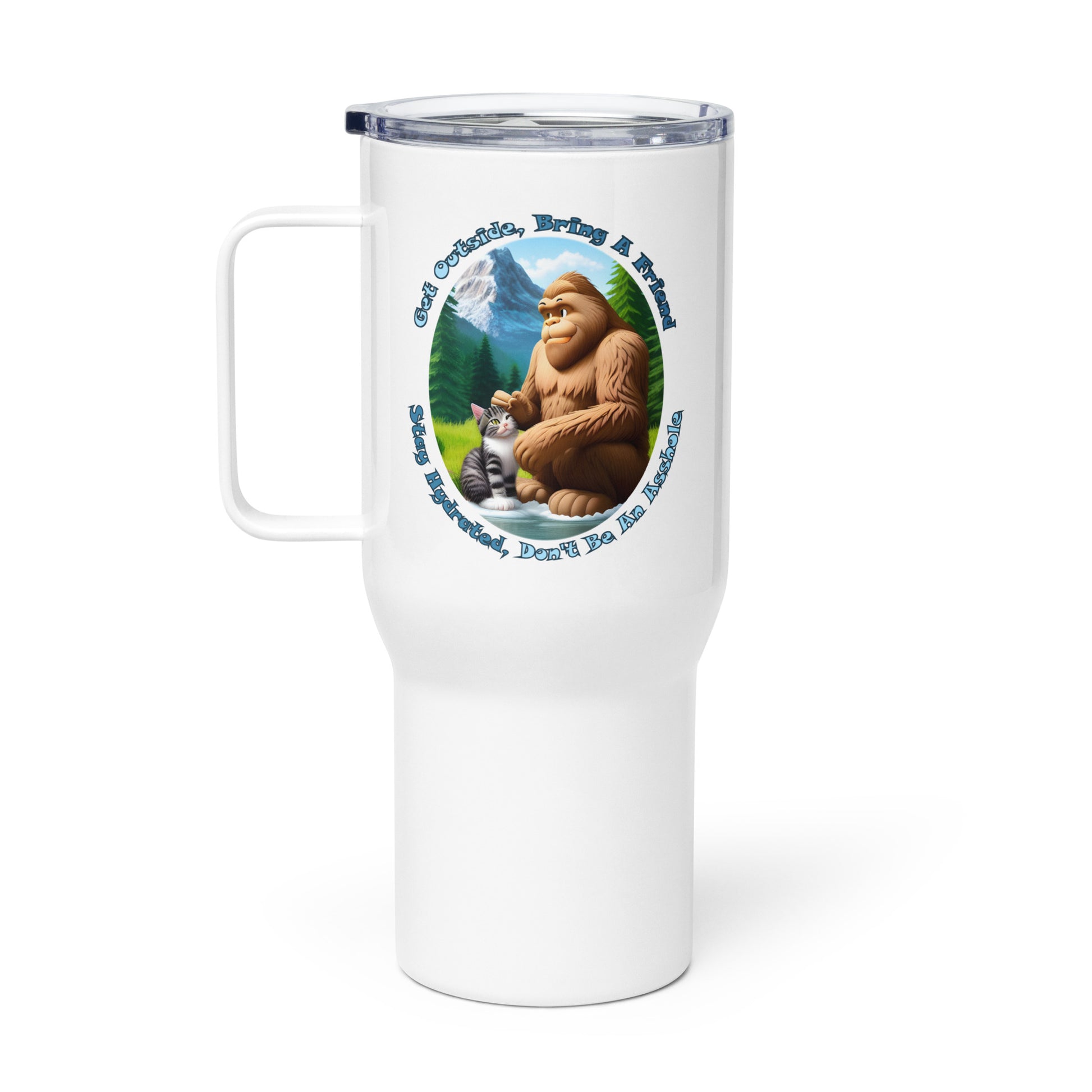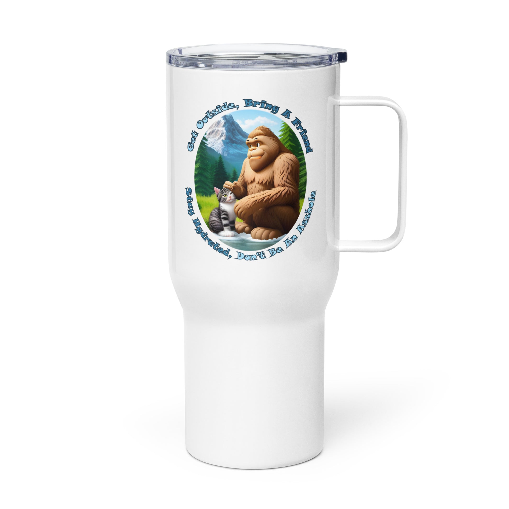 Get Outside, Bring A Friend, Stay Hydrated, Don't Be An Asshole Travel mug with a handle