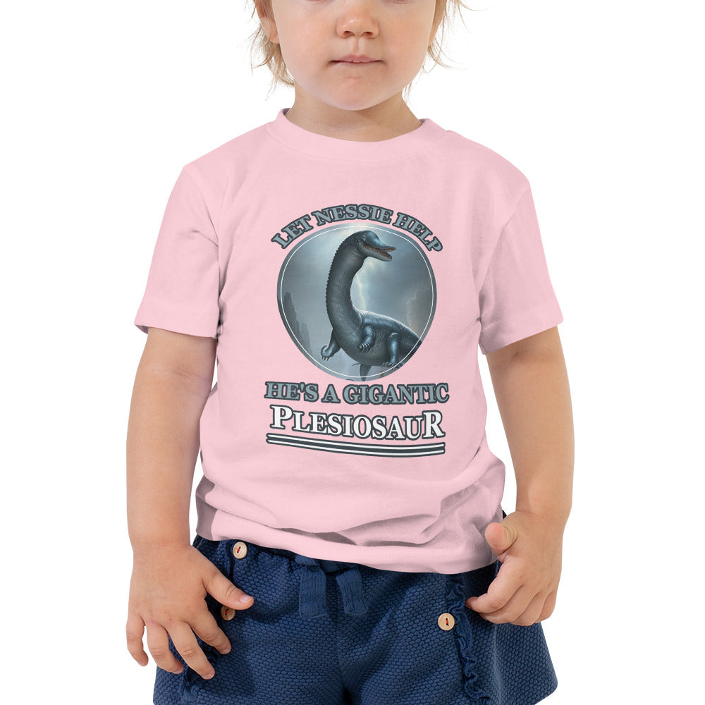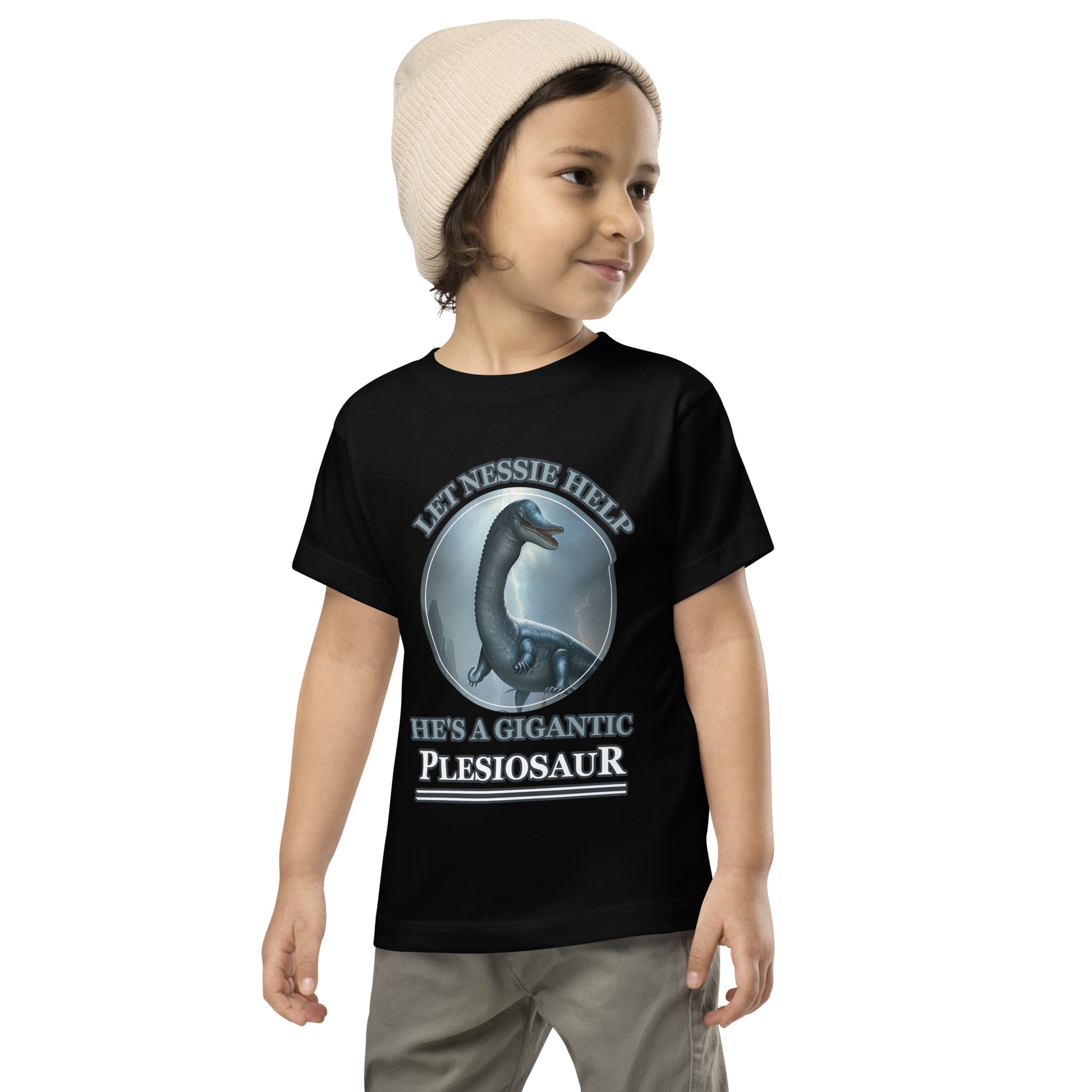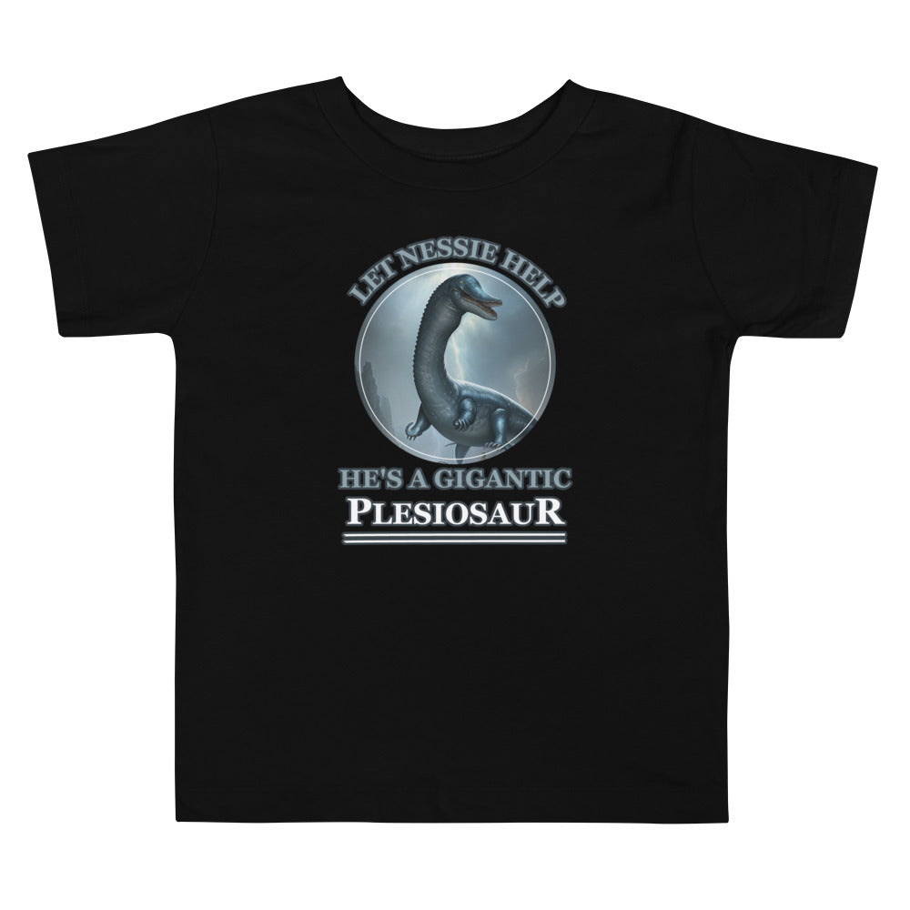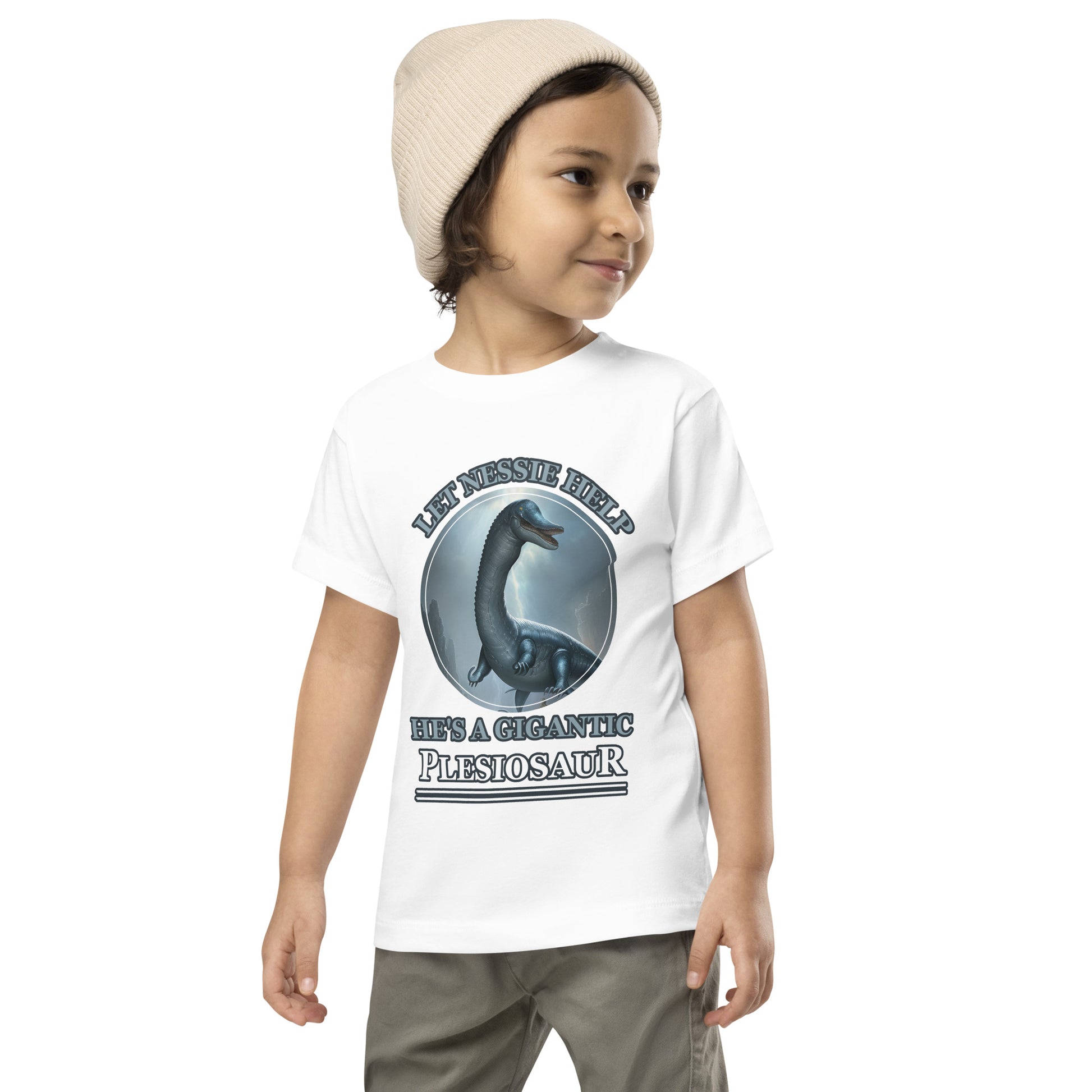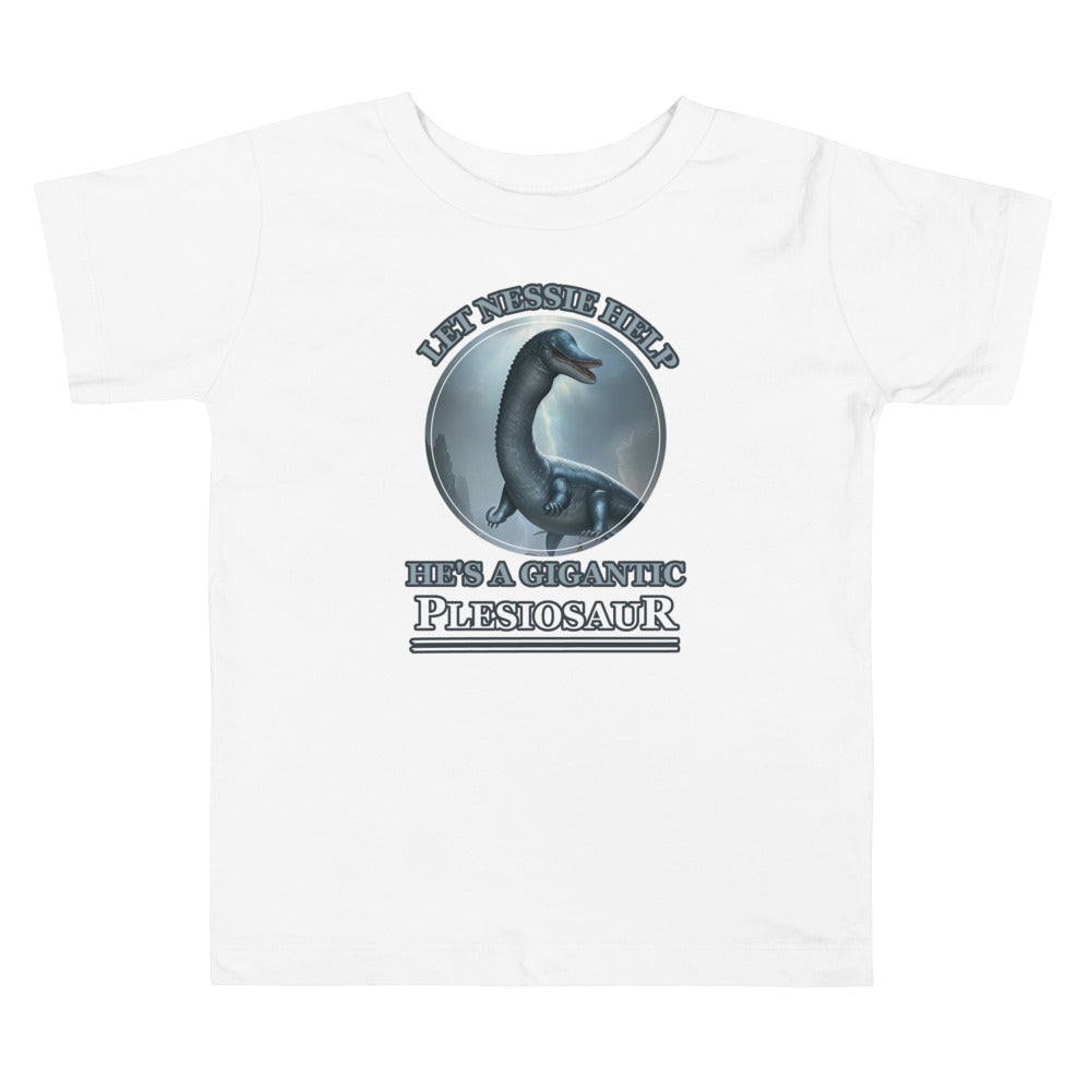 Let Nessie Help, He's a Huge Plesiosaur...aaaand we will be here all week folk. Tip your wait staff. We can’t guarantee Nessie's help will be any good, but we can guarantee your toddler will be feeling super comfy and looking extra stylish in this short-sleeve jersey t-shirt from 100% cotton with a unique print. The tee is soft, durable, and bound to become the staple of your toddler's wardrobe.