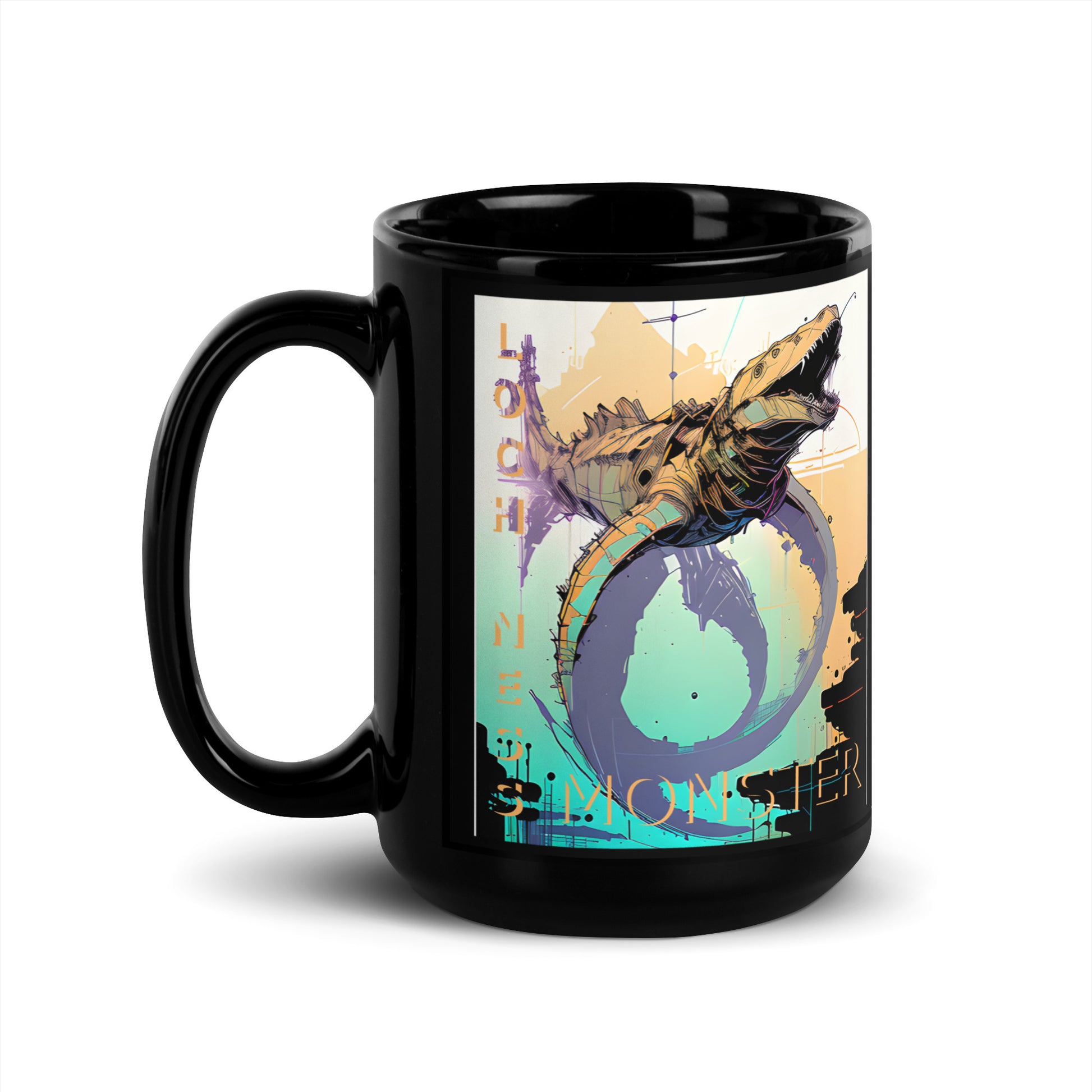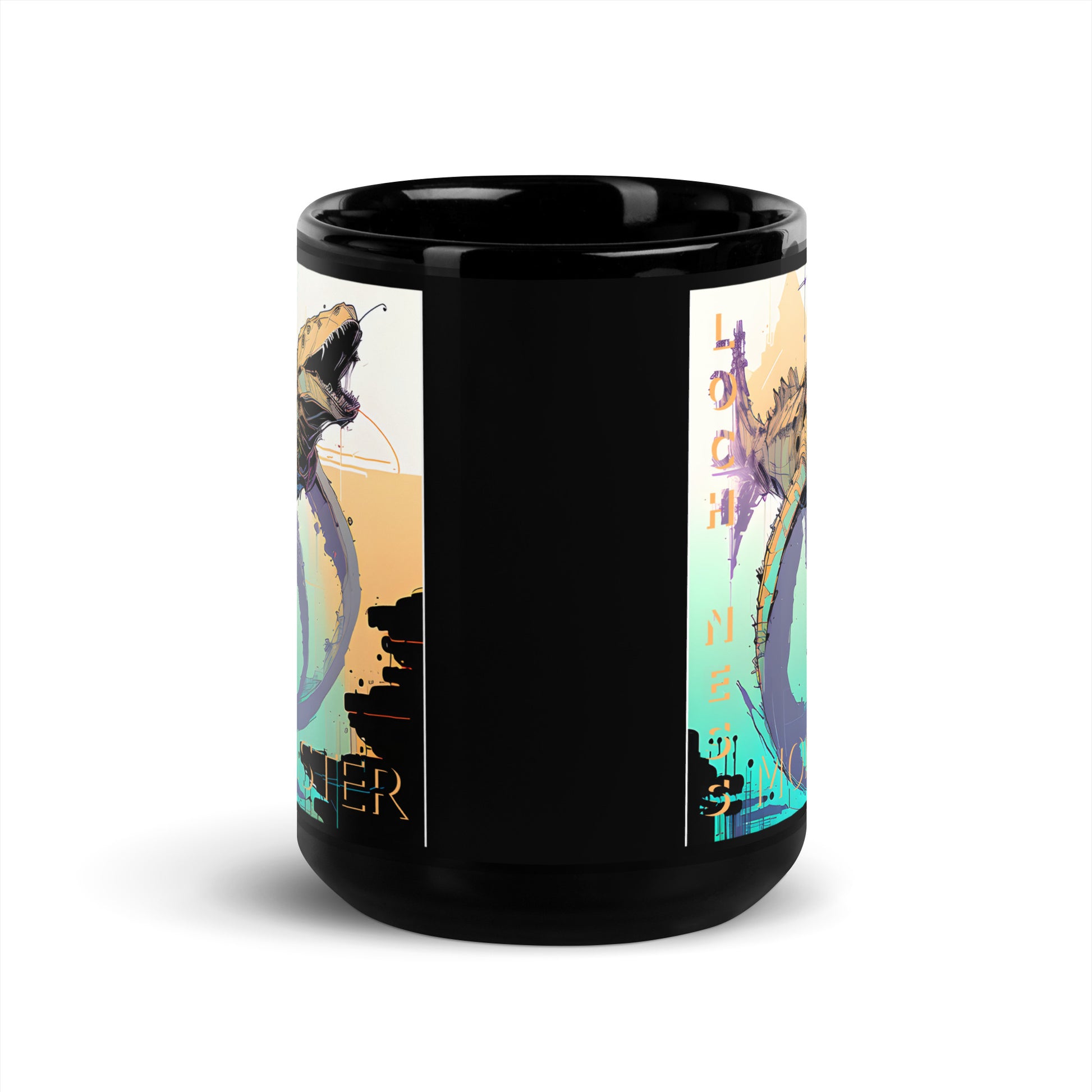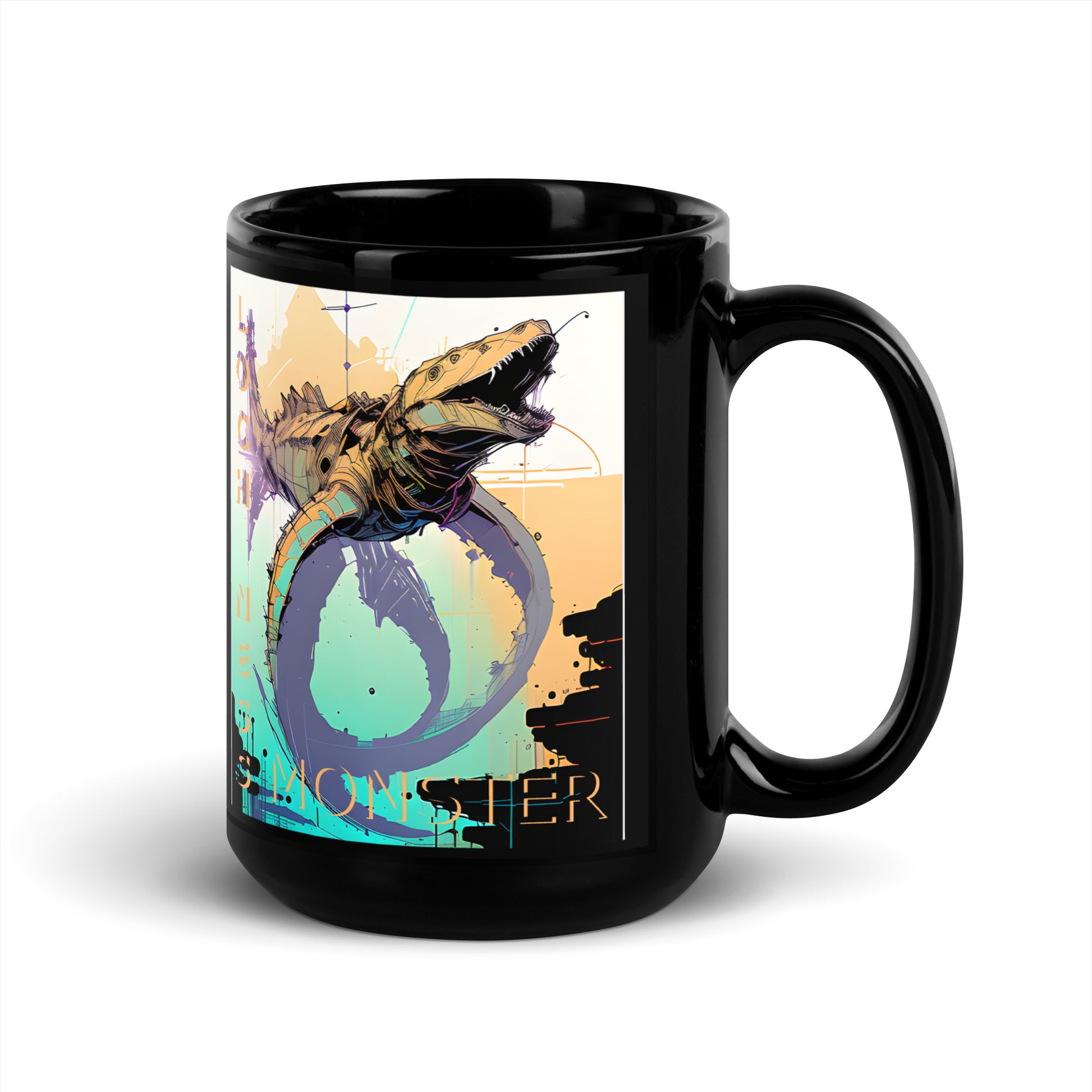 Loch Ness Monster Inkpunk Black Glossy Mug