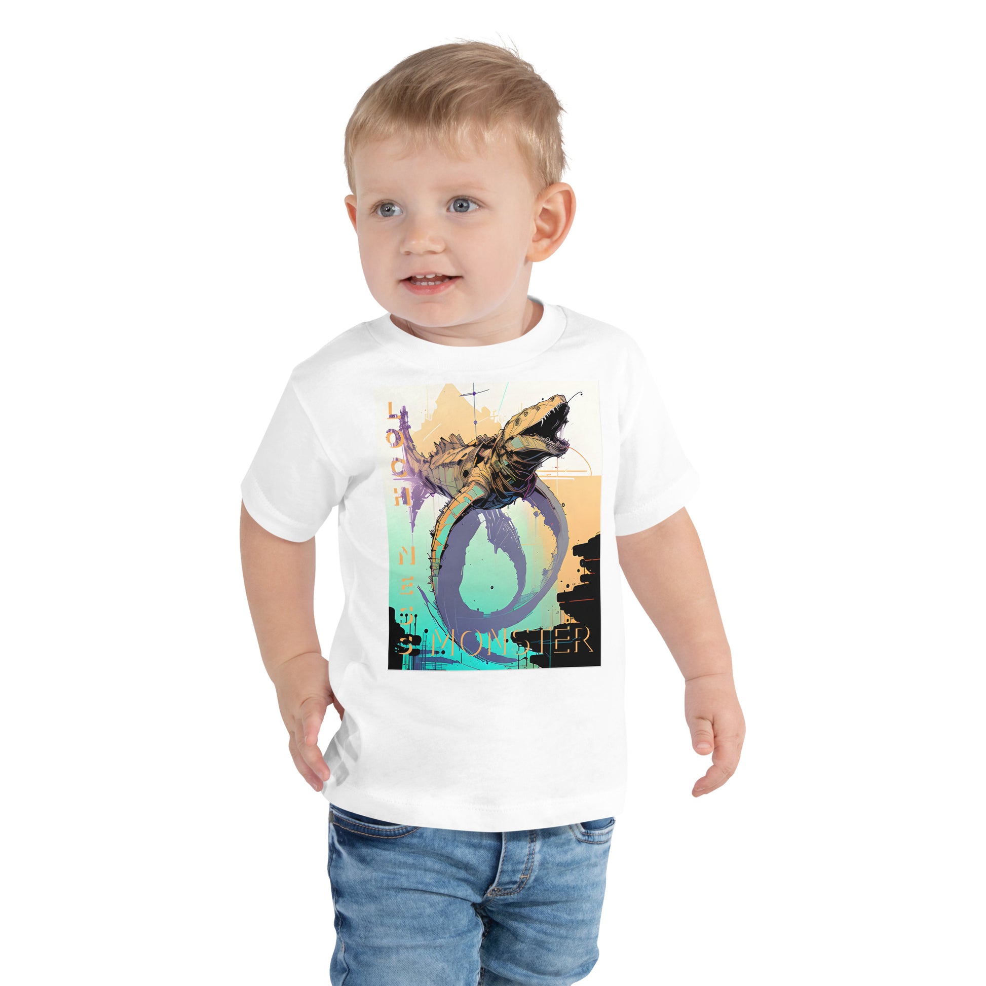 Let your toddler do their thing while feeling super comfy and looking extra stylish in this short-sleeve Loch Ness Monster jersey t-shirt from 100% cotton with a unique print. The tee is soft, durable, and bound to become the staple of your toddler's wardrobe.