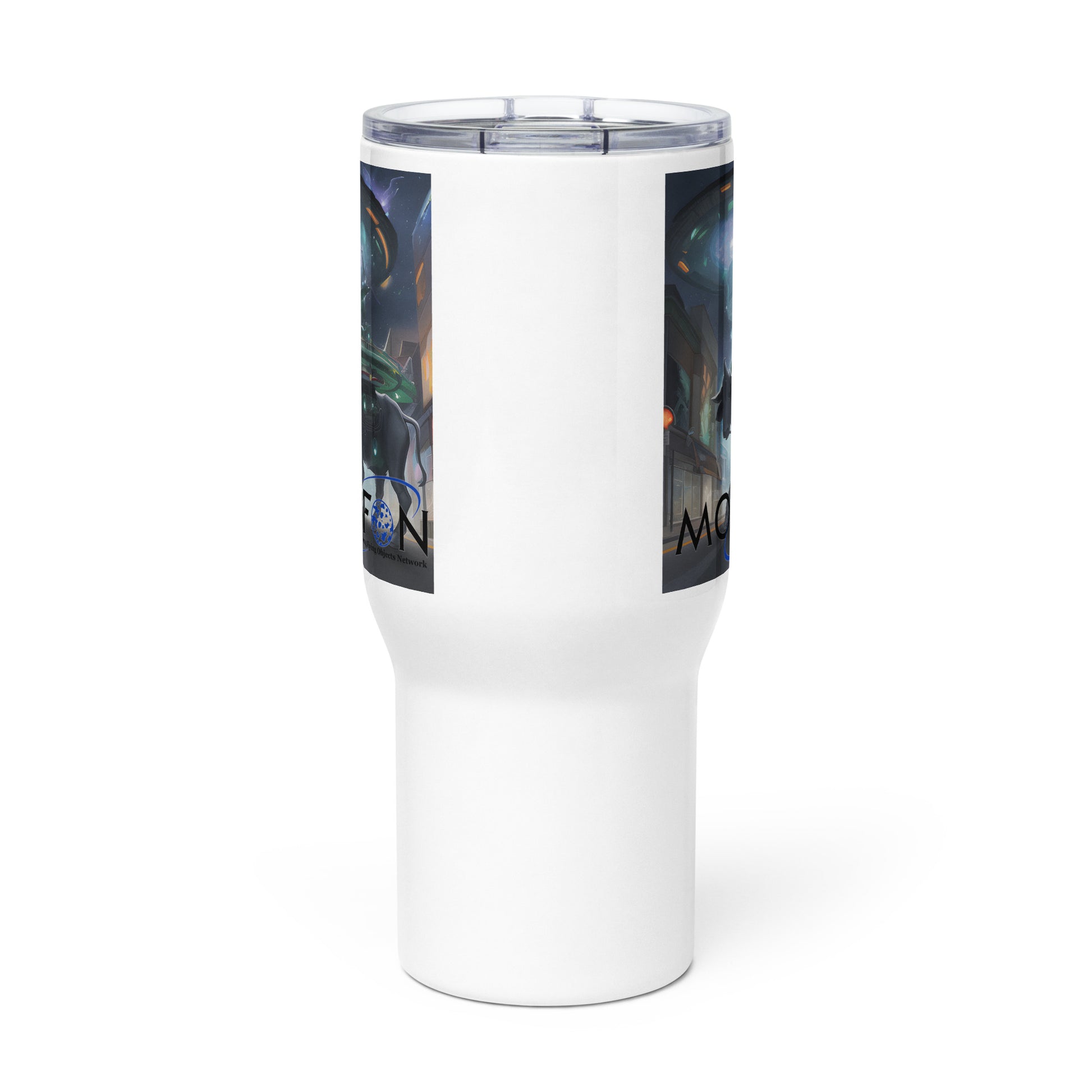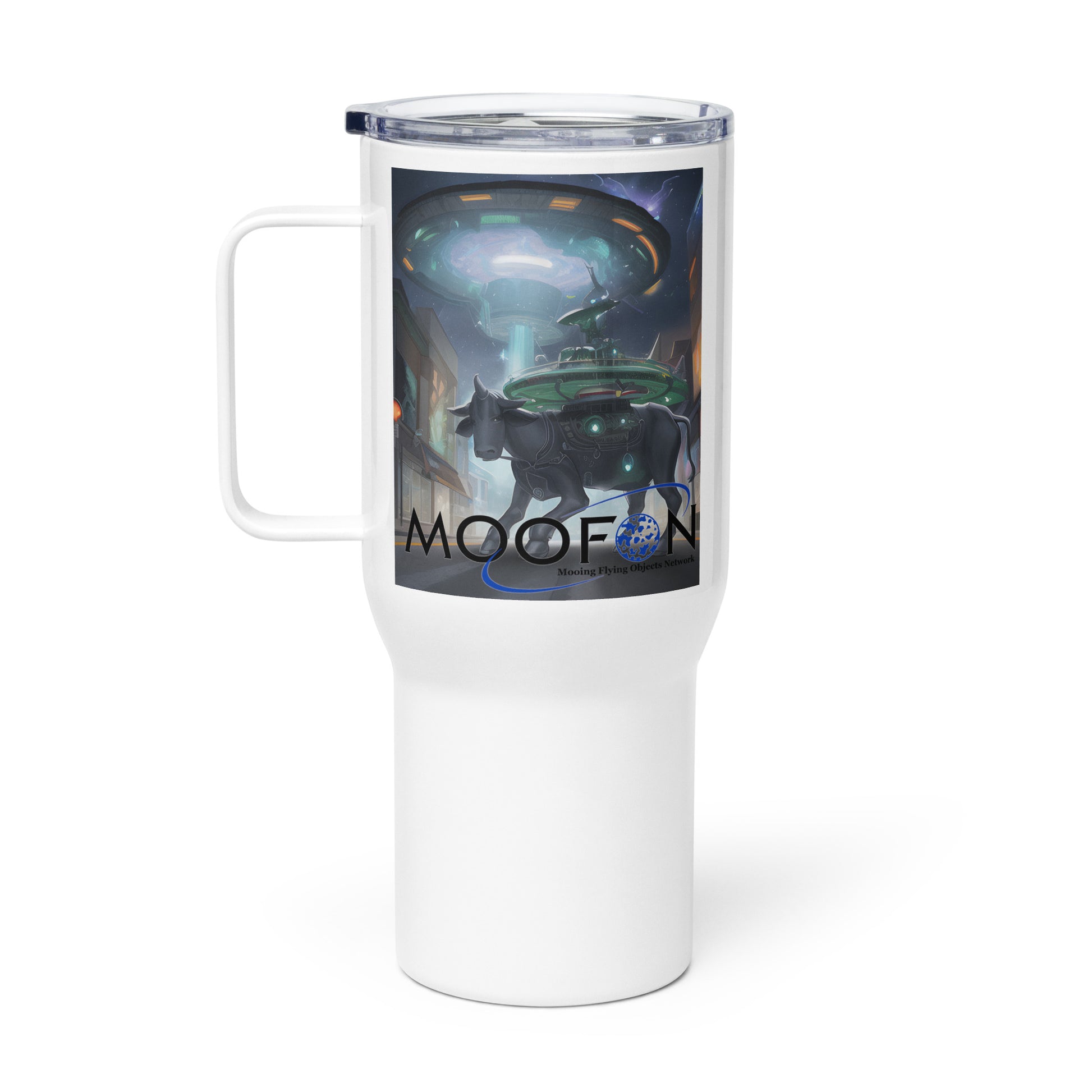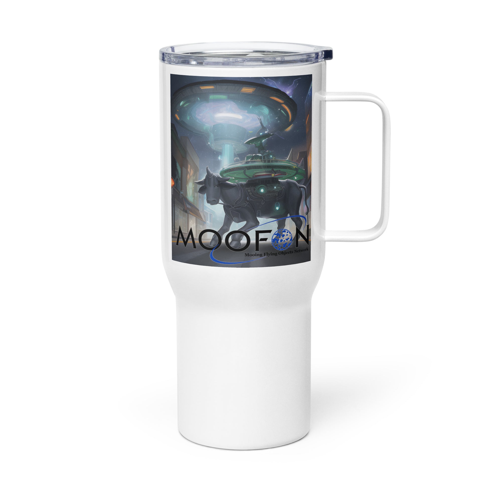 MOOFON - Mooing Flying Object Network Travel mug with a handle