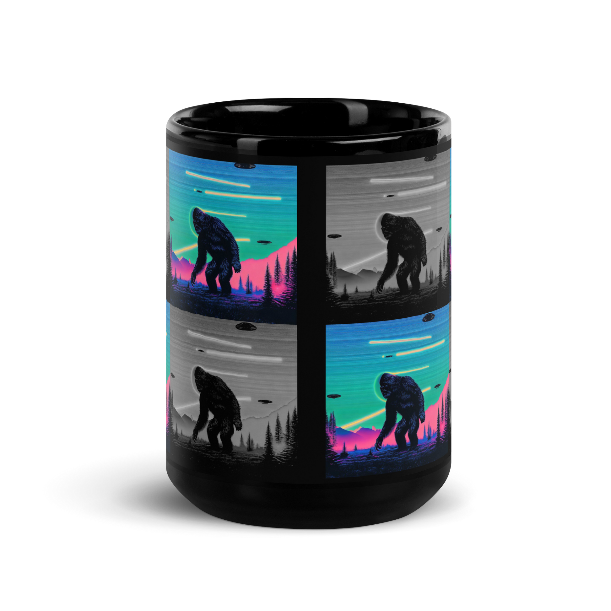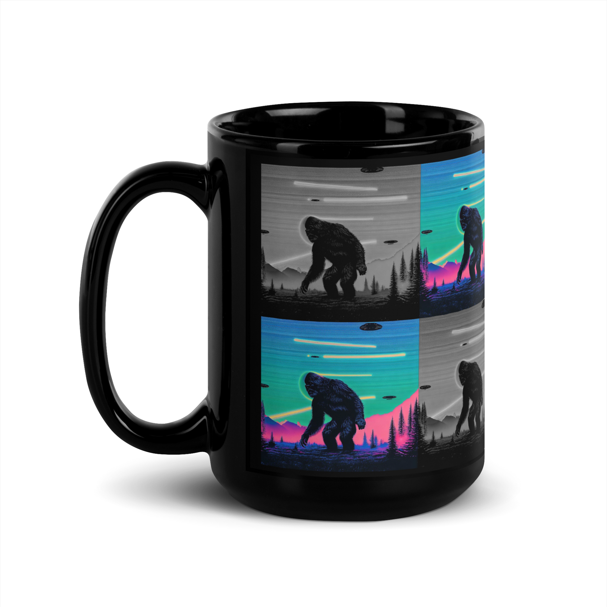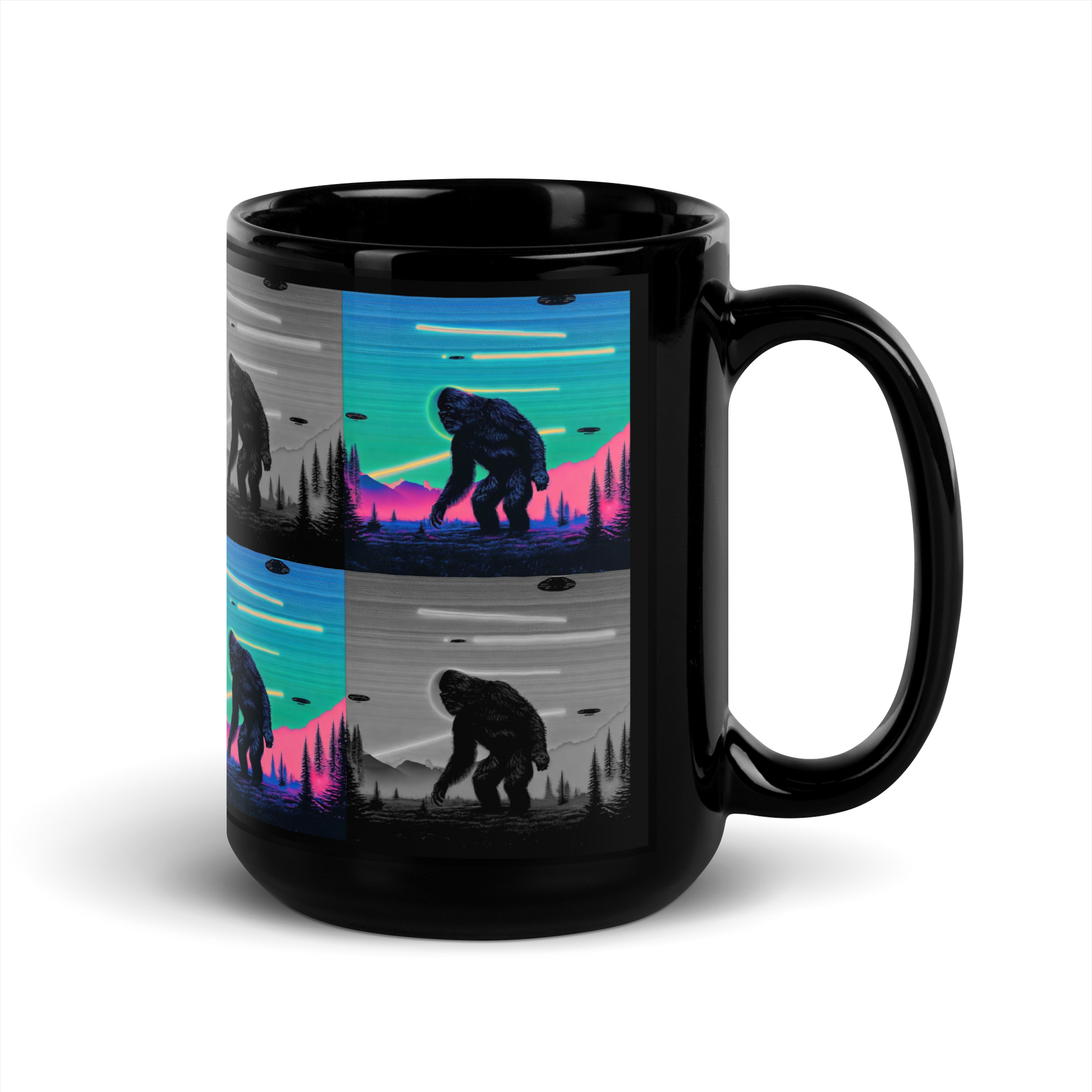Neon Bigfoot Wood Art Black Glossy Mug