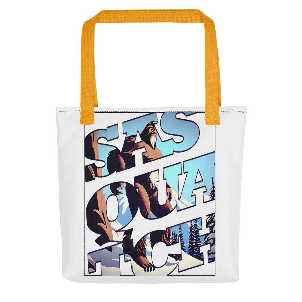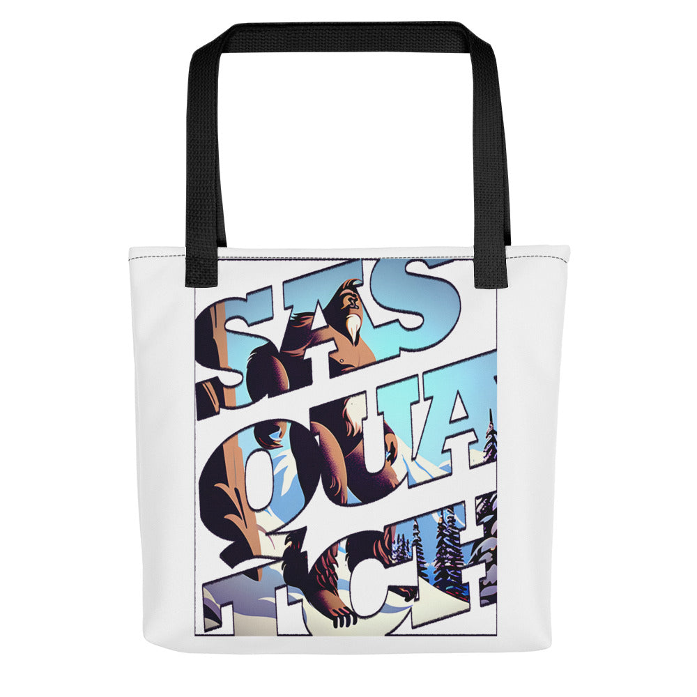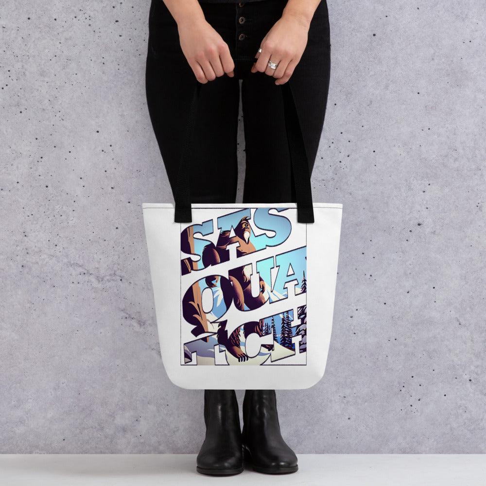 Travel the mountains seeking the Sasquatch with a spacious and trendy tote bag to help you carry around everything that matters.