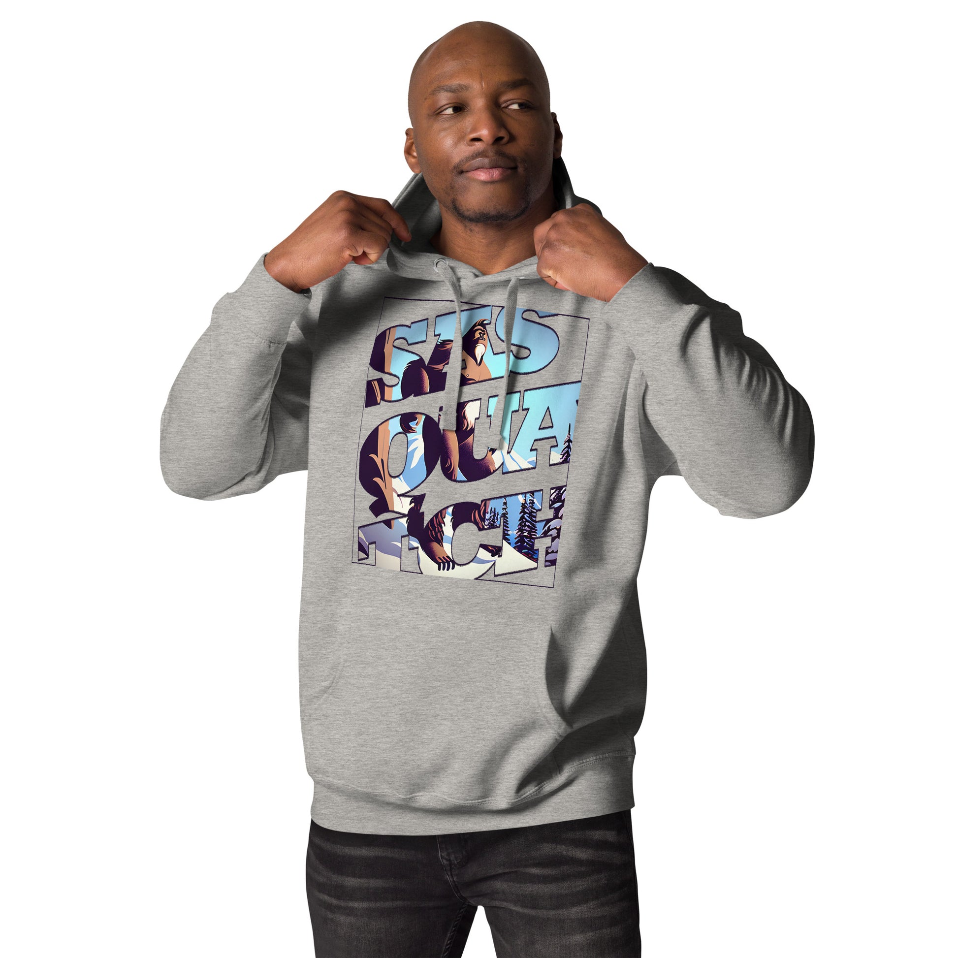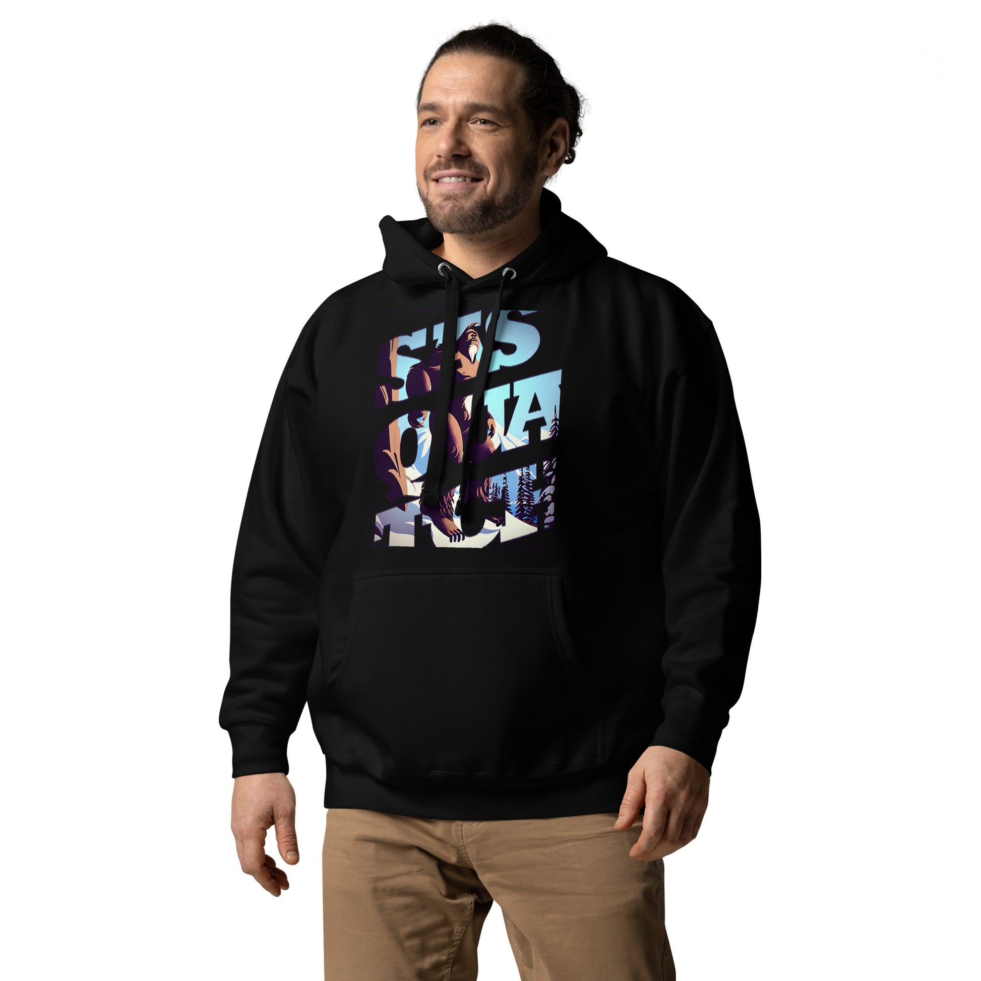 Ready to explore the snowy mountain peaks on your next Squatch adventure? Search for the Yeti in a high-quality cotton sweater with a comfort-fitted hood, matching drawstrings, and a front pocket. Upgrade your hunt gear with this dope premium hoodie.