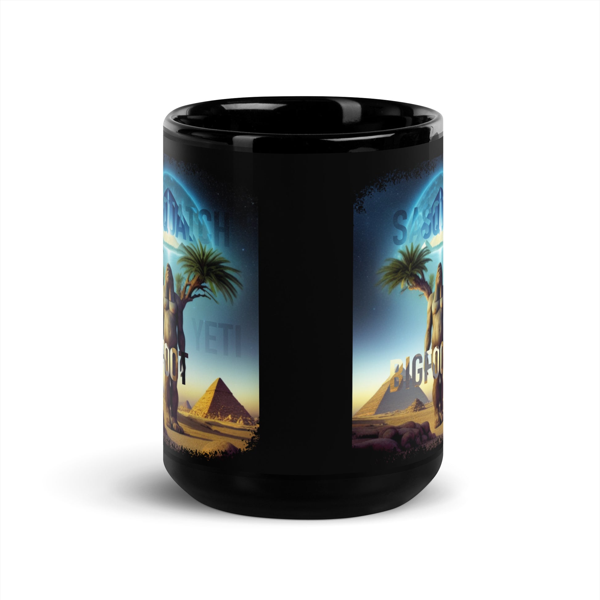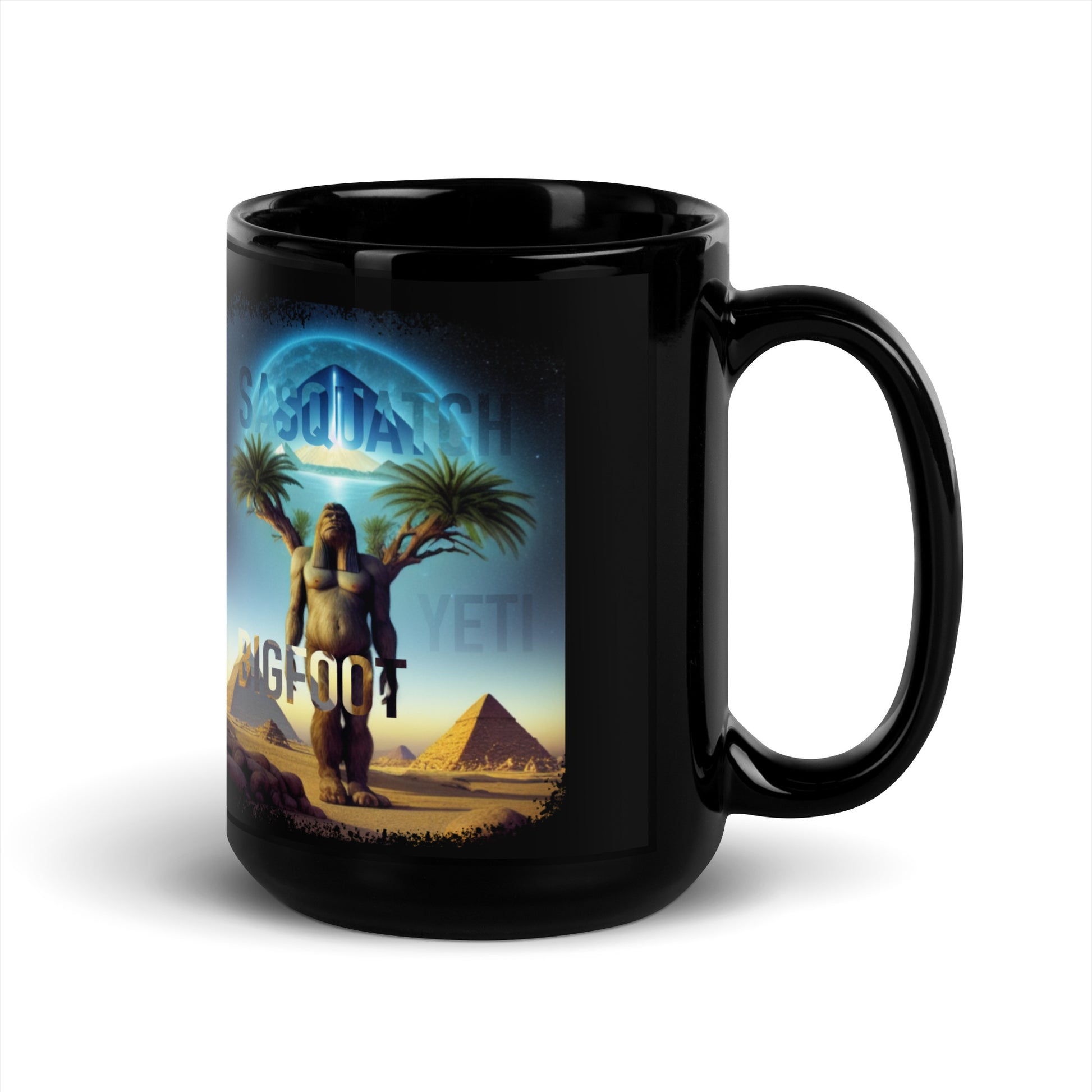 Sasquatch Yeti Bigfoot Pyramid Black Glossy Mug