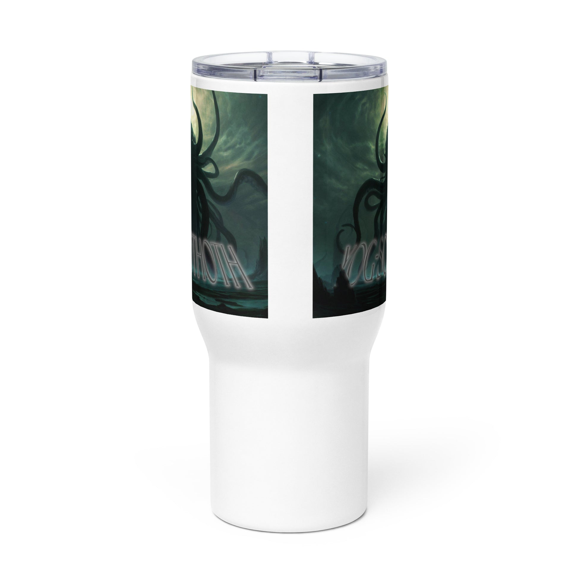 Commute to work or go on new adventures—this travel mug will keep your beverage safe and at just the right temperature, featuring Yog-Sothoth, grandfather of Cthulhu, a being beyond time and space.